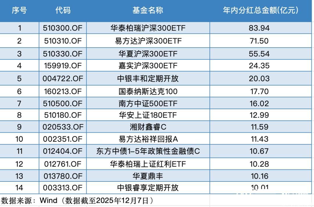 基金分红潮:年内分红2169亿,沪深300ETF异军突起