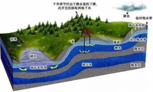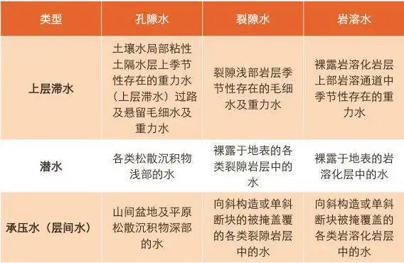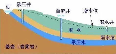 3. 地下水埋藏条件:含水岩层在地质剖面中所处的部位及受隔水层限制的情况下。