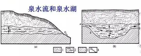 1.砂;2.含水砂;3.黏土;4.泉;h.潜水厚度;aa.潜水面;bb.隔水底板