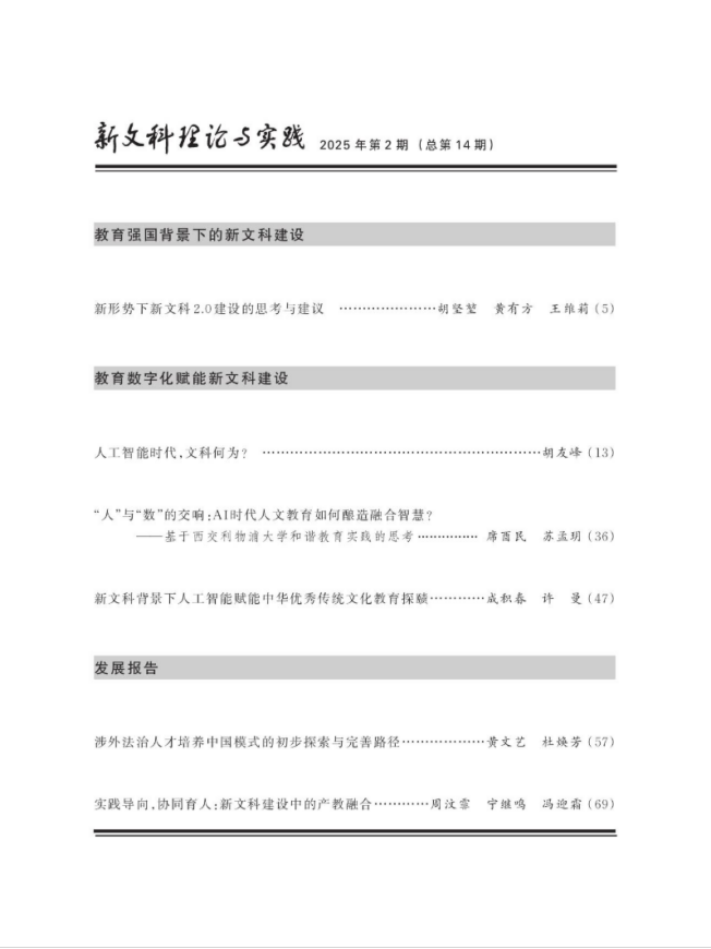 胡友峰在《新文科理论与实践》2025年第2期撰文《》指出,人工智能时代的文科危机是一个需要正视的问题,需要从结构根源、内在价值、范式理念、制度保障四方面对文科教育进行系统研究。文科危机根源于技术、制度与认知三重要素的相互交织。技术理性的日益膨胀、现代学科体系下的“分科治学”原则以及大数据计算的广泛应用,致使文科在理论与实践的内在割裂中日渐边缘化;然而,人工智能时代并未彻底消解文科价值,反而凸显人文精神在认知重构、伦理校准与创新赋能中的不可替代性。文科以人本主义与创新思维引领技术发展方向,赋能科技发展的底层架构,为科技决策划定伦理边界,从而有效抵御文化多元化对道德秩序与伦理观念的冲击,为复杂系统治理提供人文基因。在范式理念层面,文科振兴需要以科技与人文相互协同引领育人模式创新,以跨学科交叉培养体系建设推动学科范式智能化更新,通过构建以人文价值为伦理基点的技术审查机制,推动社会治理转型升级;在制度保障层面,文科亟须突破传统制度框架的路径依赖,改革以量化指标为核心的评价体系,构建基于文科发展生态系的资源保障机制,创新以数智驱动的人文教育人才培养模式,以评价体系、保障机制与培养模式三重维度的协同互构,推动文科从“被动适应”向“主动引领”的范式跃迁。