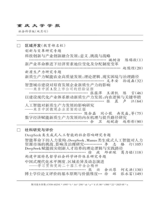 姚树洁、陈锡毅在《重庆大学学报(社会科学版)》2025年第3期撰文《》指出,科技创新与产业创新的融合发展是推动现代化产业体系建设和经济高质量发展的核心路径。在全球科技竞争加剧、产业结构加速转型升级背景下,科技创新不仅是提升国家竞争力的主动力,更是构建自主可控现代化产业体系的基础。然而,当前我国科技创新与产业创新融合仍面临区域不平衡、产业重复、技术产业化进程缓慢等现实挑战。文章系统分析创新融合发展的战略意义,探讨影响创新融合发展面临的多重现实挑战,提出强化国家战略科技力量、构建核心技术攻坚体系、优化科技成果转化机制、促进城乡融合创新发展、深化教育科技人才一体化、完善全球创新治理体系等科技创新与产业创新融合发展的实践路径,以期为推动中国式现代化进程提供理论支撑和决策参考。